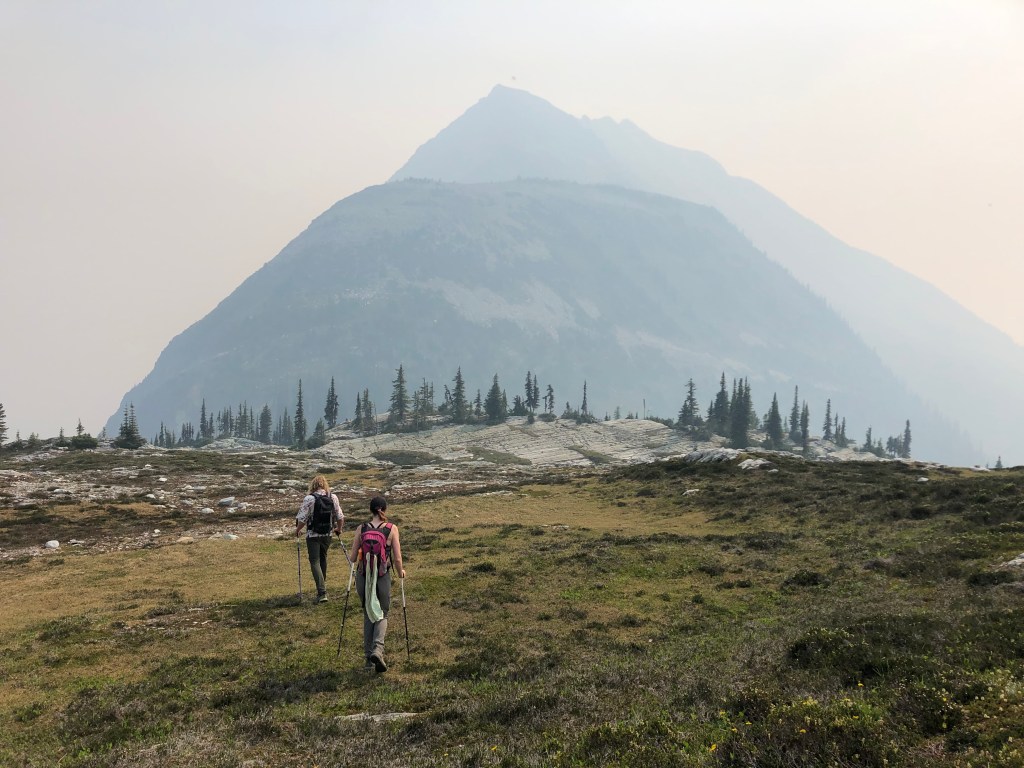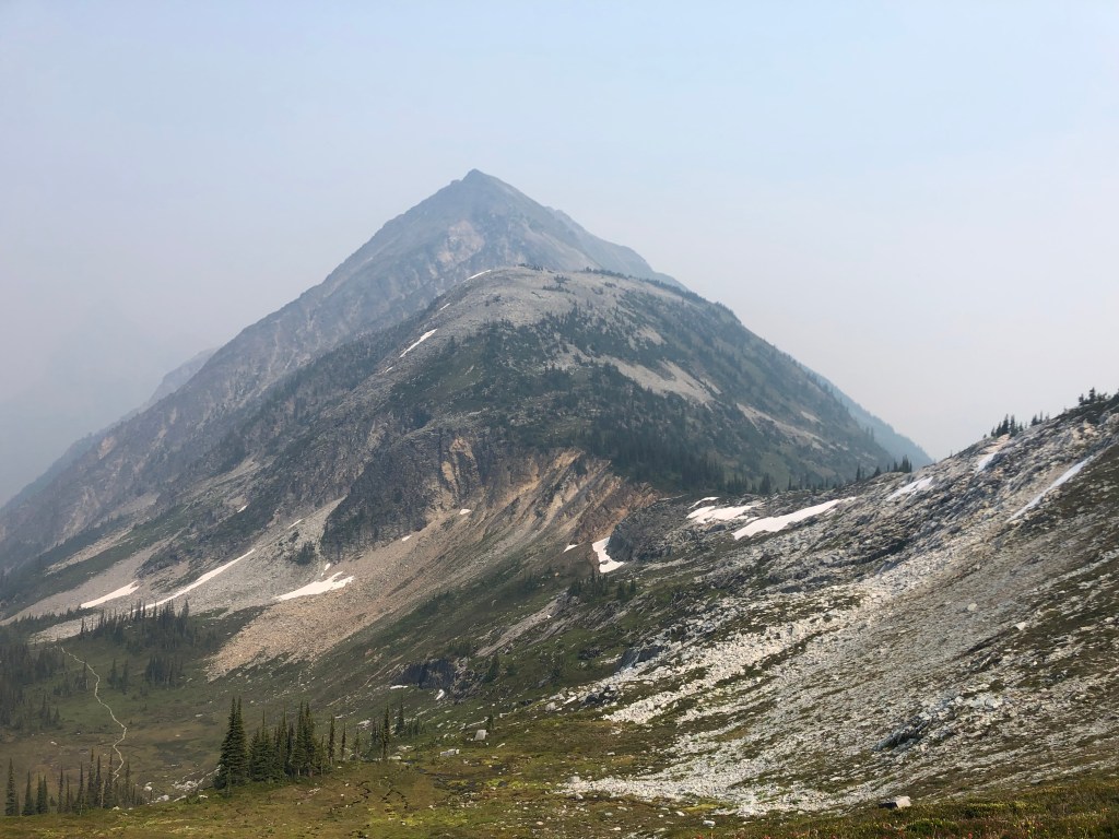 Although there is plenty of written and online material for this route, we went primarily off of first-hand beta from our buddy Scott who lead this trip. Scott had previously scrambled Cheops and was eager to take Bri and I up. We decided to chance the smoky skies in late July during a bad wildfire season in 2021, and by comparison to the skies around Golden, Rogers Pass was in much better shape. We had Tash and Jon join us too, which was good as the trail to Belu Pass required a minimum group of four due to grizzly bear activity.