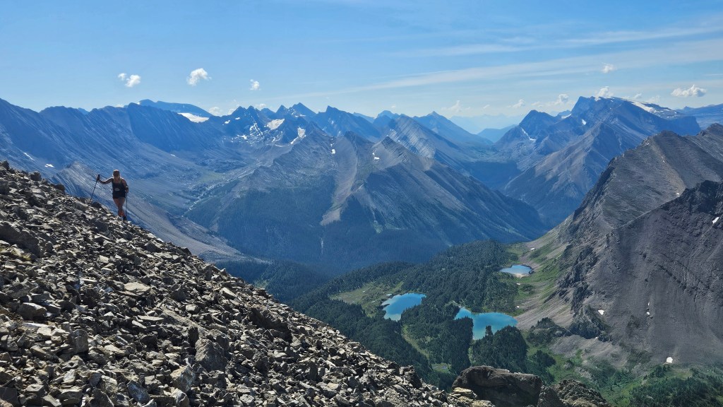 This was my first outing since dislocating my shoulder on Mt Kerr two weeks earlier. I was making a fast recovery and already feeling the itch to get back out hiking. We chose this easy straight-forward objective straight out of Kane’s (2016) Scrambles with the mindset that if I couldn’t make the peak then at least it would be a scenic hike to Deception Pass. From the pass it is a linear ascent up Fossil’s western slope. Not much of a scramble per-se but a very worthwhile hike. If day tripping this like we did, you will cover +25km car-to-car. With Fossil Mountain’s central position in the Skoki Valley the summit views are well worth the effort and this definitely should be done on a clear day.