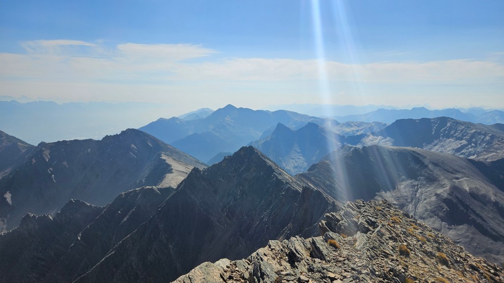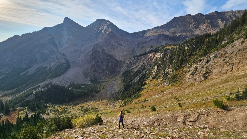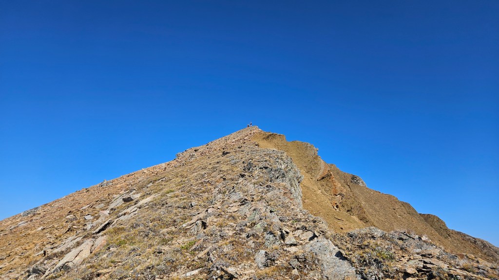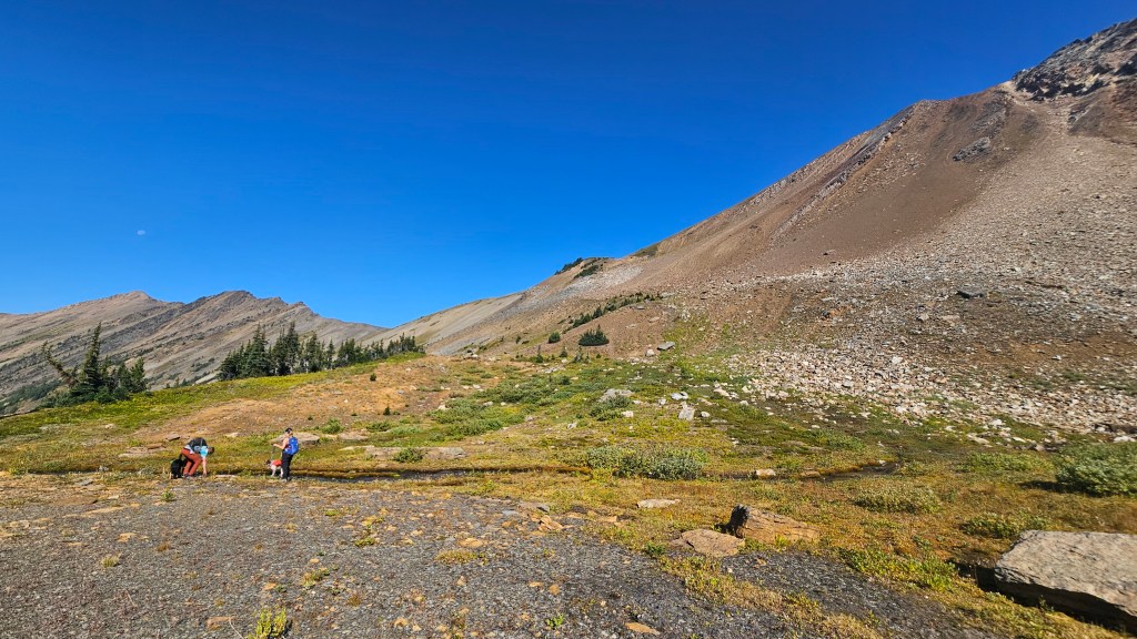 After a prolonged 45 minutes summit break, we begun our return journey with a mild variation. We hiked down off the summit briefly south to a steep scree slope which provided a fast boot-ski back down to the McLean bowl. When we topped out again on the Springer saddle, we could hear voices in the distance and to our surprise saw another group headed up past Springer Peak. From the saddle, we simply retraced our steps from earlier with minimal deviation, thought the doggos probably wracked up double the kilometers with their many side-quests. The remainder of the hike out was a pleasant and uneventful other myself falling slightly behind the others. As a group we were all back at trailhead by 3:40pm making for around a 7.5hour day. Highly recommend this one for late summer!