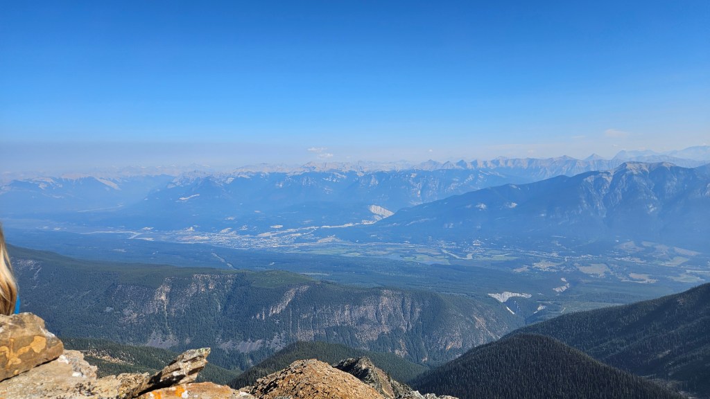 It took us around 2 hours 20 minutes to reach Springer Saddle and then another 1 hour 20 minutes (ish) to reach the summit. Another epic local view! I am very glad we didn’t push on in 2023 to summit in a whiteout, this is a peak that deserves to be ascended in clear conditions. We could see Kicking Horse Mountain Resort’s Eagle Eye restaurant in the distance. I even managed to “ice” Bri on the summit despite being the slowest in the group. Very stoked to have visited the top of this one, which we had literally been staring at from our former backyard the past four years.