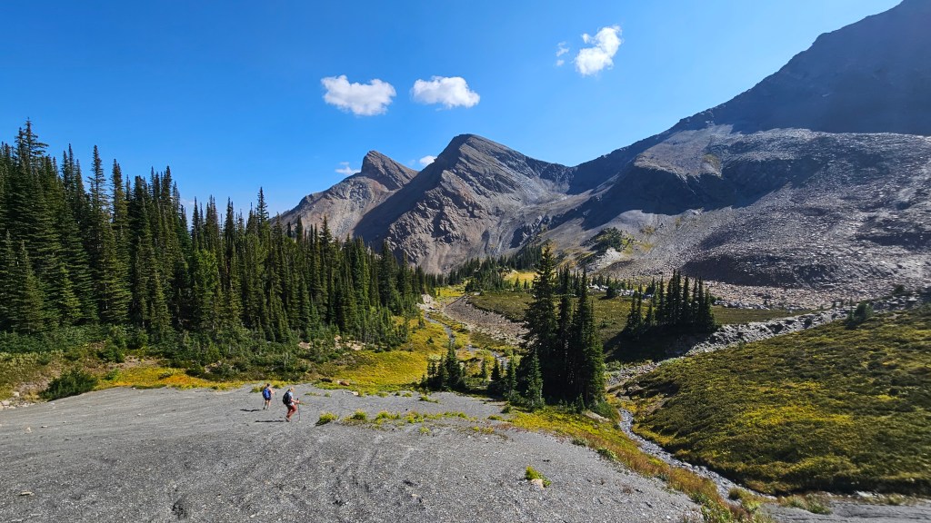 A relatively straightforward ascent with scenery that nearly rivals that of the Gorman Lake area, with the initial driving access out of Nicholson’s Canyon Creek area. We had previously been out this way with Scott for The Nipple in 2021 and again in 2023 on an unsuccessful attempt at Little Sir Donald. Despite our past trip being in late June, the 2023 attempt ended at the Springer Saddle in white-out blizzard conditions that forced us to turn back. Little Sir Donald, or LSD for short, is the common local name for this distinctive peak southwest of Golden. Not be confused with a nearby bike trail of the same name adjacently north of Canyon Creek.