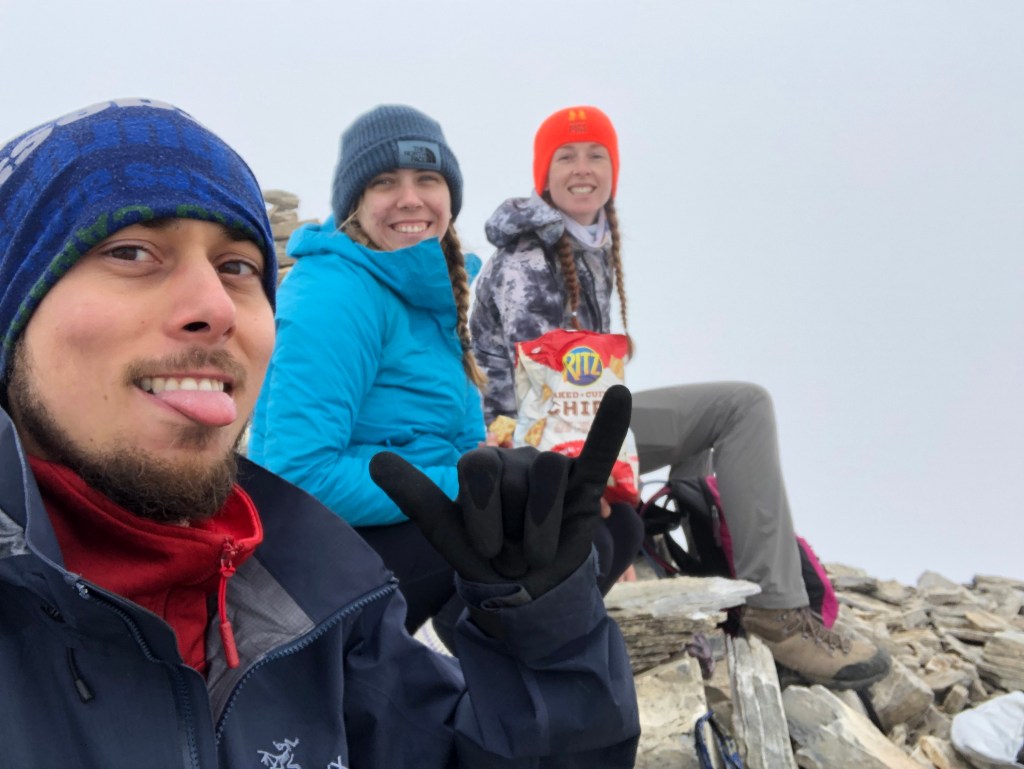 It took our team approximately 10 minutes total of sustained difficult scrambling to clear the crux section. Once we were back on the ridge crest with stuck with it for the final summit push. It was challenging to assess the exposure given the thickened cloud and lingering summit snow patch, the ridge’s width fluctuating as we scrambled over the last few sections of rock before reaching flat summit totally socked in by cloud. Our summit time was recorded at 2:15pm. Total bummer on the lack of views, but we were at least partly stoked to have completed a difficult scramble from Kane’s book!