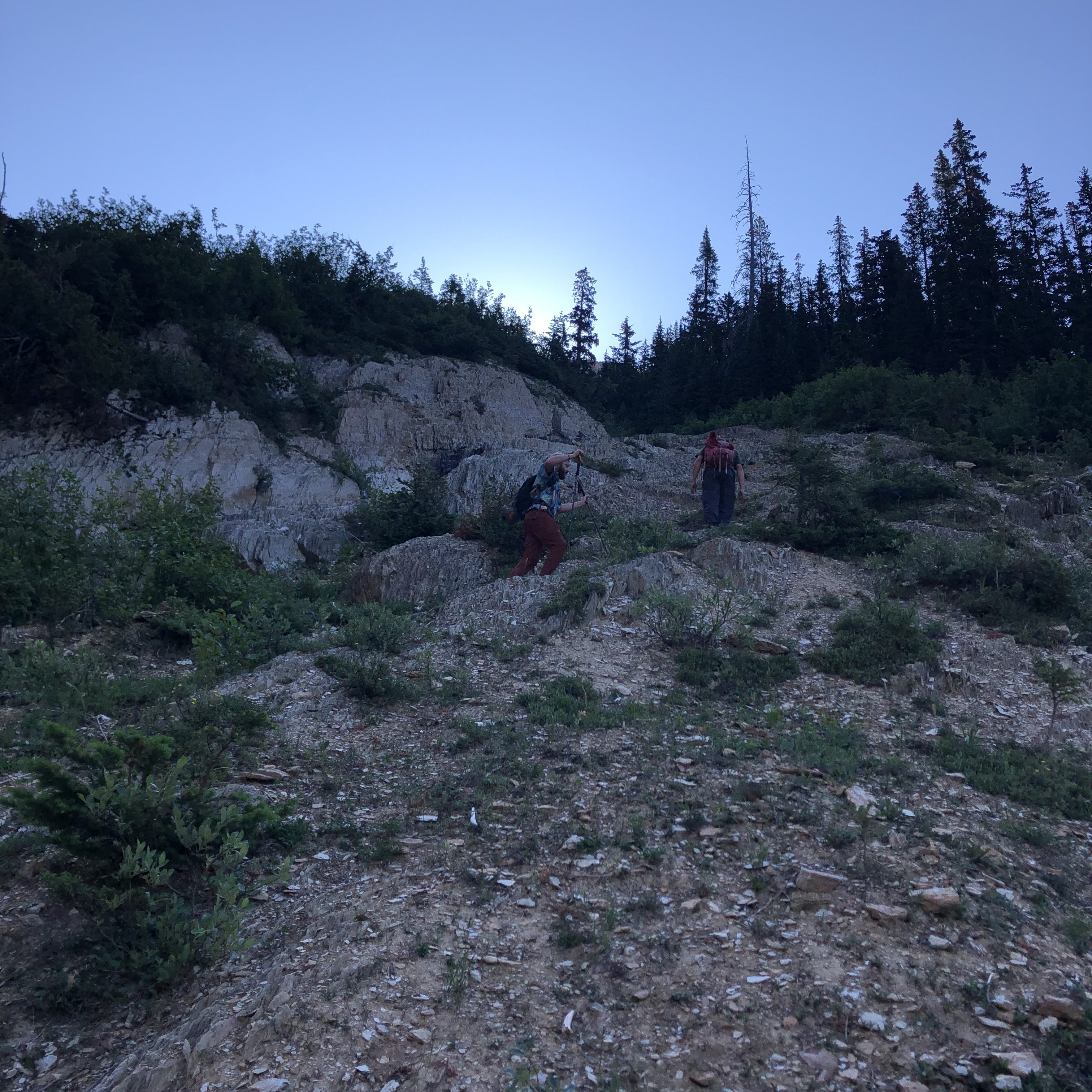 A Nalgene bottle register had been placed in the summit cairn in 2019 and we were only the second team to sign it some four years later. Given the deteriorating Redburn FSR and lack of cairns on our route, and more appealing published routes in the neighbouring national parks, I would surmise this peak is seldomly visited. We retraced our exact steps for return and made it back down to the truck in 2hrs 45min as AGAIN we had to keep the summit visit brief due to threatening weather on the horizon. Great day overall with only modest suffering for a great view!