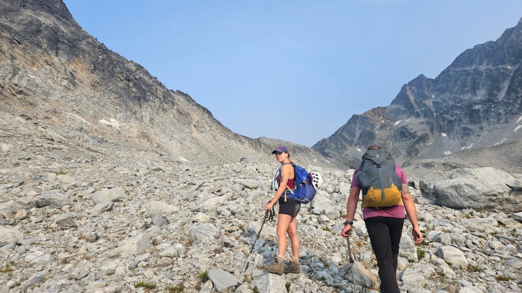 We went into the day unsure which of the two routes we wanted to take. The SE ridge is technically rated as 4th class scrambling and while offers good rock quality the route is considerably more exposed than the 3rd class rated North Ridge. Bri and Logan had looked up the route online and found a video showcasing the crux of the SE ridge which caused mixed confidence levels. The North Ridge was longer, and according to Scotty’s beta had lesser rock quality over mossy ledges, but offered minimal difficulties (his words, not mine).