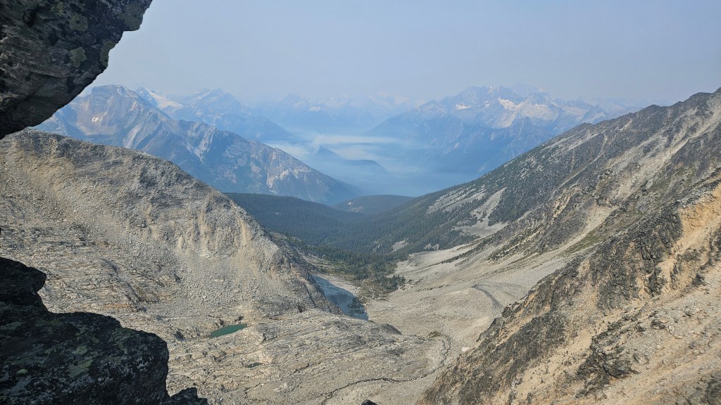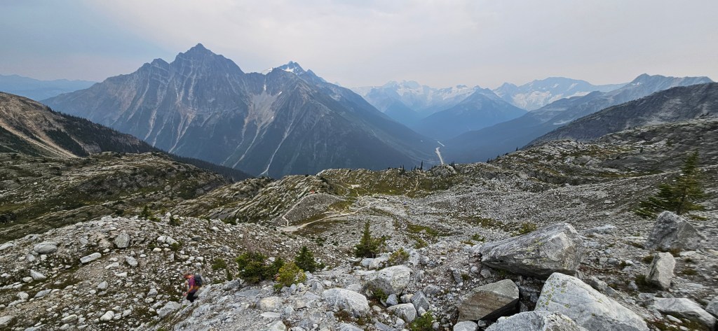 Like most routes in Rogers Pass starting from the Trans Canada Highway, the approach to Hermit Meadows lived up to its reputation as being notoriously steep. Thank goodness we only had light day packs, my hat goes off to those who lug up camping and climbing equipment there! We set out at 7:15am under partially hazy skies and despite it being the second week of September, it was still quite hot-muggy out that morning.