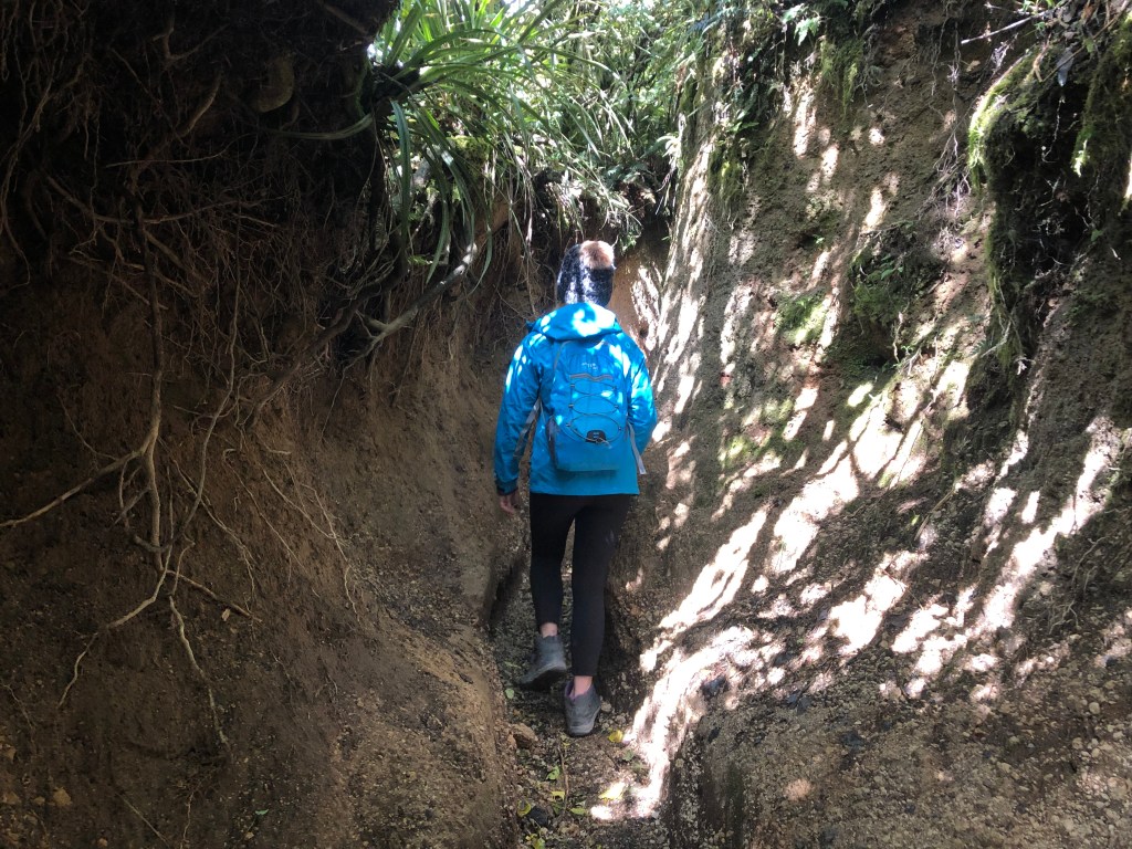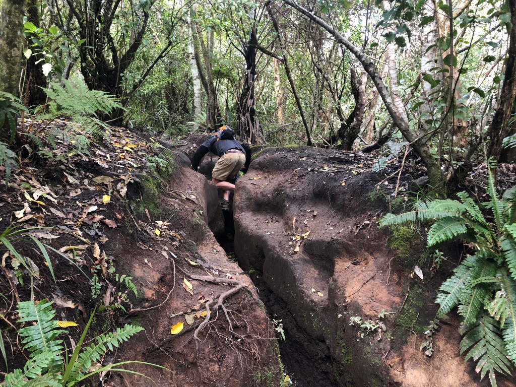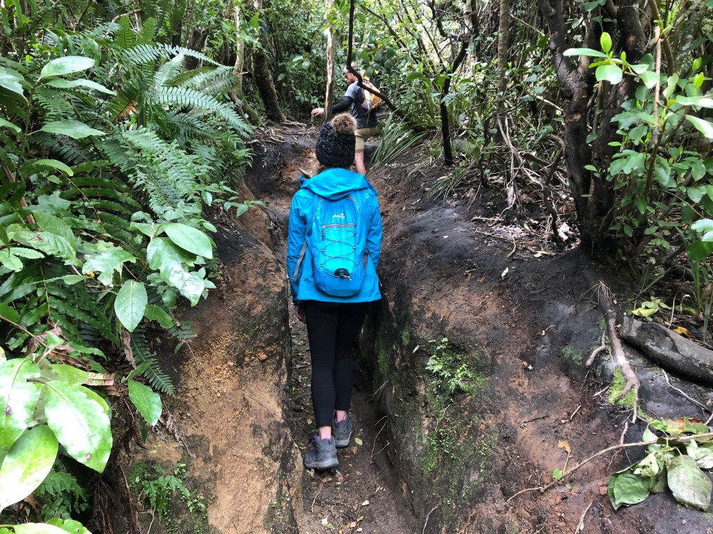 Starting out from the carpark the trail winds through a private farm field before entering the forest and quickly gains in elevation. The trail follows what would have historically been the lava outflow of the volcano up the southwest corner of the peak. Some sections involved easy scrambling along the previously mentioned hard packed mud-trenches and several complex root systems. It was a short and steep effort filled with laughs and good story swapping, Liam later surprised us at the viewpoint with summit beers, what a legend!