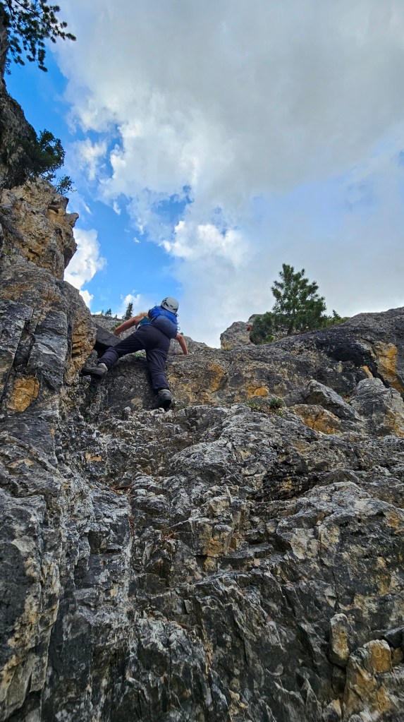 This was Bri and I’s redemption trip from 2024’s unsuccessful attempt at Noseeum’s difficult route and instead bagged Bearskin Peak (Noseeum 3). It ended up being our first 3000m peak of the season, and conveniently its height in More Scrambles is listed at exactly 3000m. Going up the moderate route was much easier than what we had encountered the previous trip and navigating much easier thanks to all the photos we took in 2024. Plus, we had refreshed ourselves on the description from More Scrambles. Nathan, who essentially led the large group up Copper Mountain on our previous outing, was the only one who joined us for this trip.