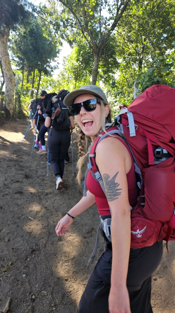 We had a very early start out of Antigua the morning of November 6th, the morning consisting of various meeting points and the logistics of getting to the trailhead. Being a guided tour, we didn’t have to carry any sleeping gear (yay) and only had to carry 1 of the 3 provided meals, so all things considered our overnight packs were relatively light. We did have to carry around 3L or so of water but thats pretty normal for our adventures. Most gear was available for rent, and in hindsight trekking poles would have been ideal, Bri and I managed without. Arriving at the trailhead was a mild shock; the number of shuttles/buses gave us Lake Louise vibes.