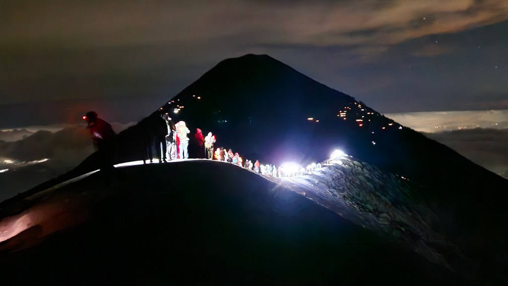 However there was one other thing in our view and it was the continuous line of headlamps back to basecamp. Of course its hard to complain about over-tourism given that we ourselves were there as tourists, but this was the living breathing definition of it and it marred the experience of the return hike. It took us over two hours to return to basecamp due to the high volume of hikers slowly plodding their way along. It felt like being in city rush hour traffic and it was impossible to overtake anyone given how congested the trail was. We didn’t return to basecamp till nearly 9pm and everyone was pretty exhausted by then, with some in the group being quite vocal about it. Luckily for Bri and I, not everyone was miffed and those still on the stoke-high sat with us to continue watching Fuego while enjoying a hot supper.
