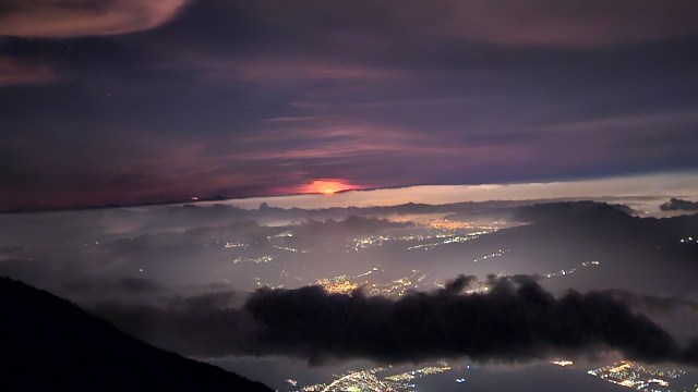 We truly lucked out. Storms rolled in during our hike to the viewpoint and it was hard to tell the difference between the rumbles of thunder versus the volcano. The weather however, skirted to to our west fully avoiding the volcano and lingered, offering a brilliant display of lightening. As the storm ramped up, the sky darkened enough that we could see the glow of Fuego’s eruptions. Our group stuck around for nearly an hour past sunset, with each eruption seemingly more colourful then the last. A third phenomena occurred when it was time to turn around for the hike back to basecamp. Behind Volcan Agua and beyond the city lights of Guatemala City, a brilliant orange light was emerging from the skyline and it ended up being a blood-orange moonrise! It was amazing to witness all three things within the same hour.
