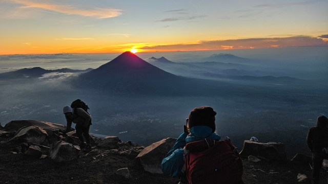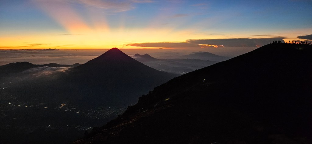 I virtually did not sleep that night. Fuego was very active, with some of the eruptions shaking the whole mountain. One eruption in particular felt similar to a magnitude 4 earthquake and physically shook the whole hut. It was a wild experience and one of the coolest things I’ve ever seen! I stayed up taking photos and video till around midnight, but would continue peering out the hut’s bedside windows every time I was woken. Not everyone shared in my enthusiasm. When the alarms went off at 3:30am to partake in the sunrise hike, only Bri and I got up, the remaining eighteen in our group opted to continue sleeping. They really did miss out on a good one, and the effort from hut to summit was arguably the easiest leg of our trip!